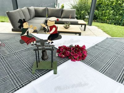 Originally, this fabric was made of pure linen. Later, when cotton was imported and became more well-known, starting from the 19th century, Kelsch fabric began to be made in a blend (meaning with a cotton warp and a linen weft). Linen has been cultivated in our regions since the 12th century, whereas cotton cultivation was never possible there. Kelsch was manufactured by peasants in winter, at their homes. In most farms, there was a loom, and the yarns were dyed with indigo for blue and madder for red. The types of checks varied depending on the regions, weavers, and families. This Kelsch fabric was used to make duvet covers and pillowcases, with the tops of these covers mostly made of Kelsch, while the bottoms were made of bleached linen. The curtains that closed the alcoves were also made of Kelsch. Traditionally, Catholics in the last century had predominantly red fabrics, while Protestants often had blue check fabrics. As for the origin of the word “Kelsch,” it seems to come from the adjective “kölnisch” (from Cologne), recalling the use of “Cologne blue” cultivated on this side of the Rhine since the 8th century. Indeed, Charlemagne had ordered and regulated by very strict edicts the planting of woad (giving the blue color) by dyers. Others suggest that the word “kelsch” could be of Celtic origin. Indeed, the Celts planted flax and knew how to weave check fabrics, as evidenced by the weaves of Scottish clans to this day.