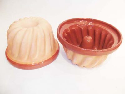 Plates and kougelhopf molds are molded in plaster molds or matrices. At this stage, the potter proceeds with filling: handles and other details are applied using slip, which serves as glue.